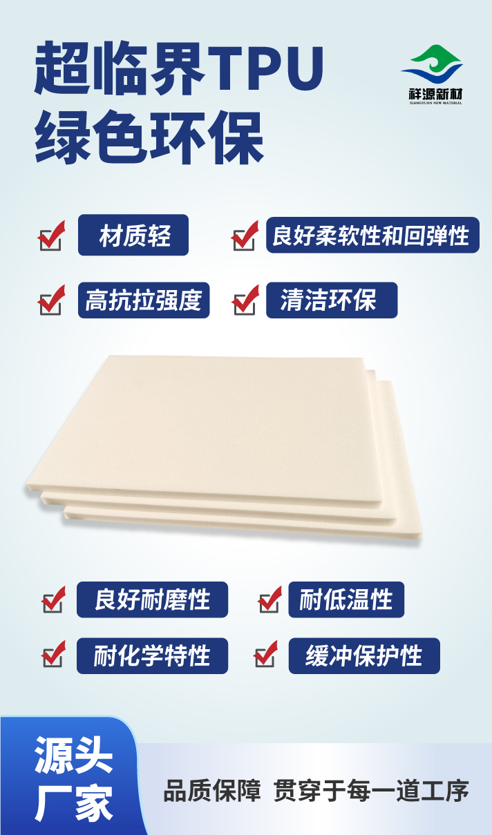 TPU(热塑性聚氨酯弹性体)作为一种超临界发泡弹性体材料,具备材质轻、清洁环保的核心优势,同时拥有优异的柔软度与回弹性,可提供可靠的缓冲保护性能;此外,其还具备高抗拉强度,以及出色的耐磨性、耐低温性与耐化学特性,综合性能出众。